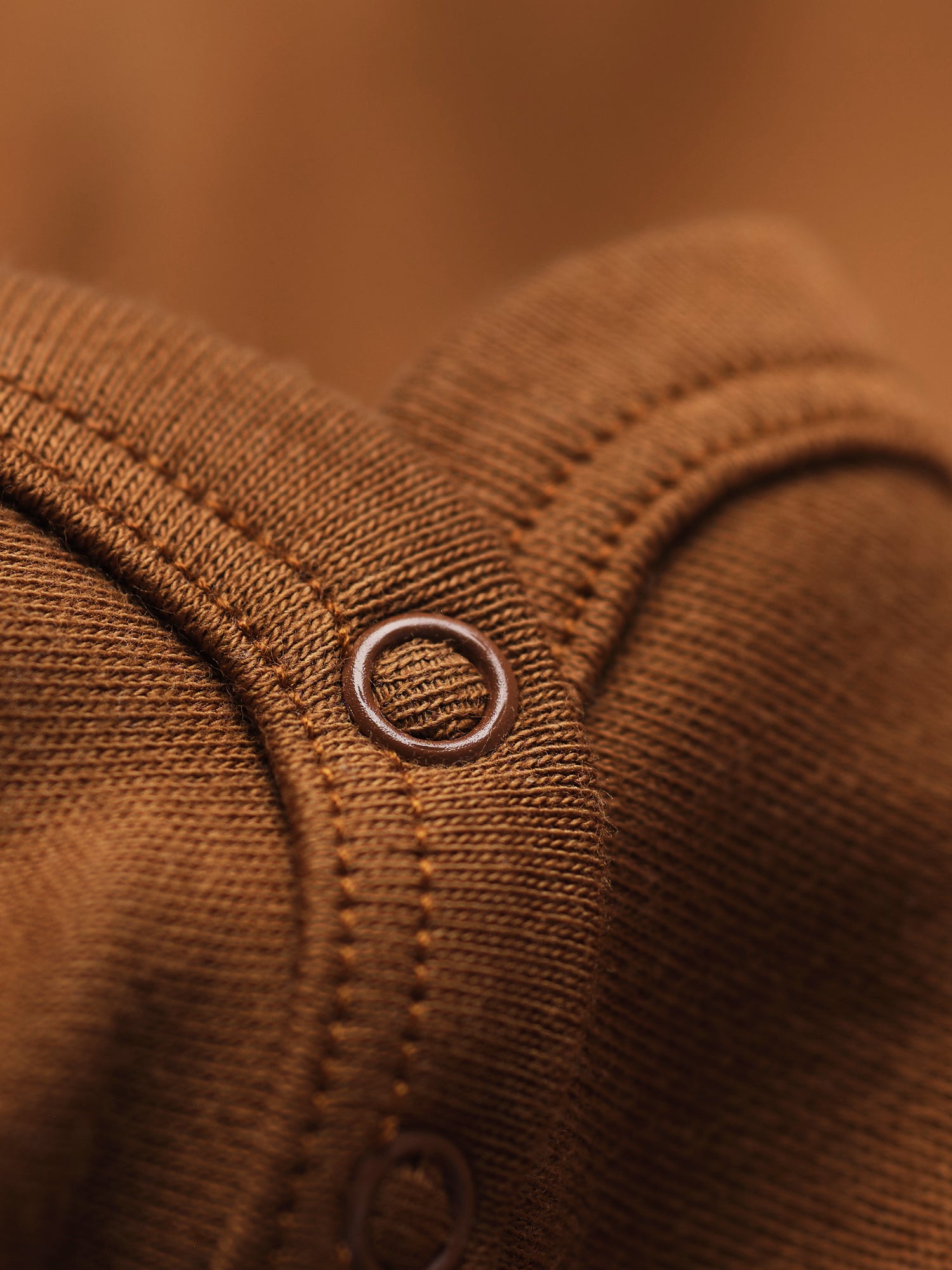 2023 Startede vores innovation med et unikt design og en søgen efter en potentiel leverandør. Det er vigtigt, at vores leverandør bekymrer sig om miljøet og bruger naturressourcer i forskellige stadier af deres produktionsproces. 2024 Efter seks måneders research på den rigtige leverandør startede vi vores produktion af økologisk tøj i januar. .